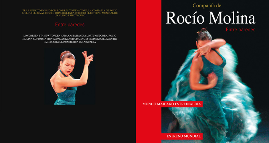 Diseño de los elementos de comunicación y asistencia a la organización del estreno mundial del espectáculo Entre paredes de la Compañía de Rocío Molina que se llevó a cabo en el Teatro Principal de Vitoria. Organizado por Cultural Álava.