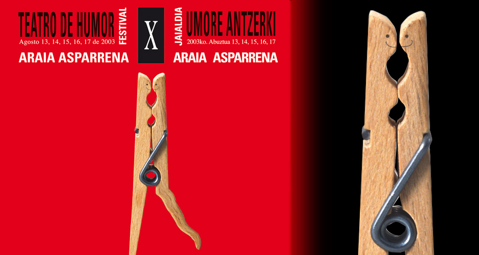 Generamos la imagen de esta edición del Festival de Teatro de Humor estableciendo un vínculo visual en torno al signo «X», con el doble significado de «décimo» y la calificación «X» del género erótico. Una pinza, que recuerda la forma del signo «X» recrea una escena amorosa.