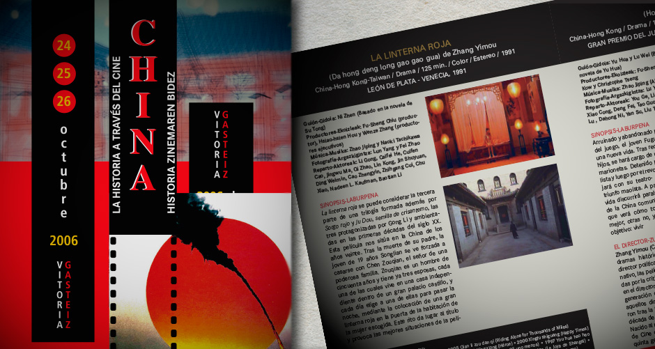 Diseño de cartel y programa sobre el ciclo de cine dedicado a China. De las jornadas La historia a través del cine, organizadas por el Instituto de Historia Social Valentín de Foronda, Universidad del País Vasco (EHU / UPV).