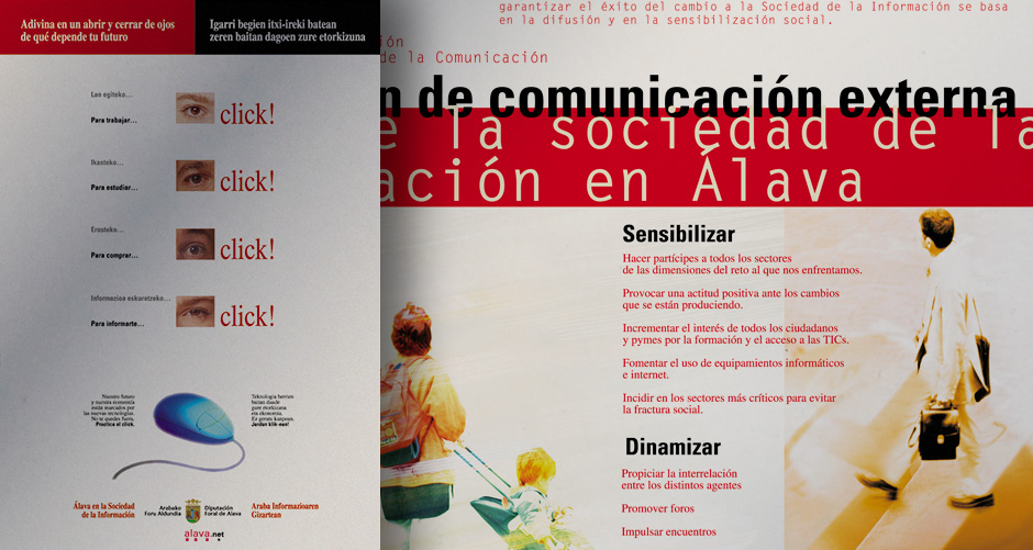 Al comienzo del boom de las nuevas tecnologías de la información, elaboramos un proyecto de comunicación institucional dirigido a informar y sensibilizar a la población y otros sectores de la sociedad alavesa sobre los retos del desarrollo de la sociedad de la información.