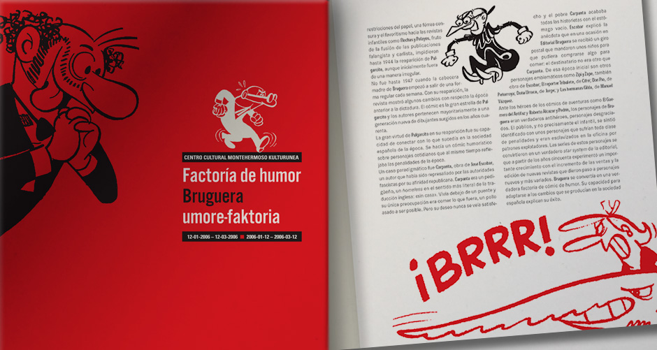 Diseño del catálogo de esta exposición que nos adentra en el fenómeno editorial más significativo del cómic en España de la segunda mitad del s. XX, encarnado en la editorial Bruguera, el centro de producción donde se gestaron los personajes de tebeos más populares para varias generaciones y que forman una parte imprescindible de la historia del cómic en España.